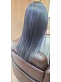 前上がりレイヤーのカットベースに、ネイビー×シルバー×ブラックのカラーリング。淡いパープルも少し入っているので光によって様々なお色味を感じられます。ブリーチ必須のメニューになります。