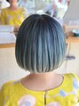 根本ネイビーからグラデーションで毛先は水色へ。ブリーチは2回してます。