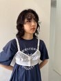 お顔まわり中心にしっかりレイヤーの入っているベースに大きめのウェーブパーマをかけたスタイルです。伸ばし途中の変化にもオススメです。