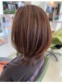 ナチュラルレイヤーボブスタイル!表面に少しレイヤーを入れることで、動きと軽さが出て、暑い季節でも重たく見えません!カラーはやわらかいブラウンベースに、繊細なハイライトをプラス。立体感とツヤが生まれ、白髪ぼかしにも対応できる大人のデザインです