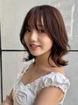 レイヤーで動きをつけた“くびれミディ”。 顔まわりは軽く、毛先には丸みを。 柔らかく女性らしい印象を引き出します。