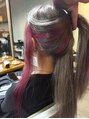 アッシュブラウン~グレージュ系の落ち着いた寒色トーン。 ビビッドなマゼンタピンクやチェリーピンク系。ブリーチをしてから発色させた高彩度のカラーで、ツヤ感とインパクトがあります。