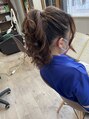 高めポニーでボリュームと華やかさをプラス。カールで立体感を出し、横顔や後ろ姿も美しく見えるアレンジです。