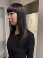 ダークカラーとぱっつん前髪でモードロングアイロンでツヤを出すようにスタイリング