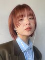 - 顎ラインのミニボブ、姫カット。ブリーチ1回のオレンジベージュ。