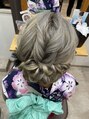 編み込みを取り入れたまとめ髪スタイル。ゆかたに合わせて上品で落ち着いた印象に仕上げました。花火大会や夏祭りにぴったりです。