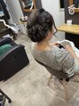 ゆるく編み込んだ毛流れとふんわりとしたまとめ髪で柔らかな印象に仕上げました。ナチュラルで優しい雰囲気が魅力のスタイルです。
