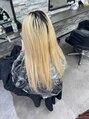 前回ホワイトの色落ちからリタッチをして原色の赤に原色の赤はベースを綺麗に抜いていると金髪に落ちてくれます♪その後、スーパー人毛エクステ20枚でインナーに黒を入れています