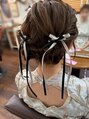 羊ヘアー。正面からもしっかり可愛く見えるように、ツイスト編みを入れています。風や湿気が多い日でも、比較的最後までスタイルが保てるので、可愛いふわふわ羊ヘアーもおススメです。