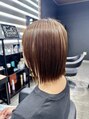 コンパクトなフォルムにまとまる、人気の切りっぱなしボブ。首元すっきりで涼しげな印象に。ストレートでサラサラ質感を活かしたナチュラル仕上げ。乾かすだけでキマる再現性の高さも◎