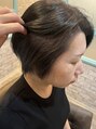インナーカラーを二色に!左側をネイビーブルーに、右側をグレージュに染めさせていただき、楽しめる個性的なカラーに仕上げ!カットは夏の時期にすごく良い、首もとがすっきりする、ショートボブに仕上げお手入れ楽チンスタイルに!!