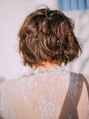 ショートボブベースのすたいるに、大きいカールのパーマをかけてエッジがきいたスタイルです☆カラーはナチュラルでありつつカールの動きが分かりやすい明るすぎないカラーですこしオレンジ系のカラー☆重ためがすきな方にもオススメです!