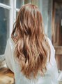 毛先少し軽いロングスタイルになります。髪の毛を後ろにした時にラウンドするようにカットしてあげると柔らかい雰囲気になります。前髪はシースルーバングでサイドにおくれ毛を作ってあります。おくれげがあると結んだ時にも小顔効果になるのでおすすめです。