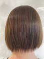複雑履歴の縮毛矯正をメテオのお薬でコントロールし、根元から毛先まで均一なストレートに仕上げました。通常の縮毛矯正より柔らかい質感なので、とてもナチュラルで好評です。