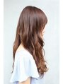 ロングのウェーブのスタイルです。デジタルパーマをスパイラルで中間巻きで、1段ずつフォワードとリバースを交互に変えてラフさを出しています。毛先の厚みは残しつつミドルセクションはセニングで量感を調整しています。