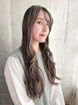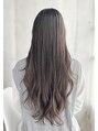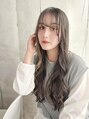 透明感のあるグレーカラーに揺れるように落ちるミックスカールスタイル です。透け感バングも全体に柔らかい雰囲気を与えます。