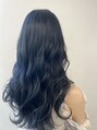 ブルーブラックブリーチ無しダブルカラーミディアムセミロング