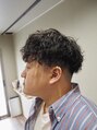 ピリッとエッジを効かせたツイストスパイラルパーマ/0.3mmからのスキンフェードで中はスッキリ、シルエットを長めのマッシュにすることでハードすぎない見た目にしています。