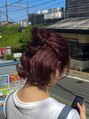 肌に透明感が出るボルドーカラーで簡単お団子アレンジ!こちらのボルドーカラーはブリーチ1回でできます!