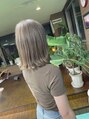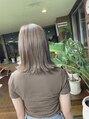 ブリーチカラーでヘーゼルなベージュグレージュです。くすみ感のある明るさと外はねストレートなヘアです。