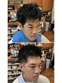 横と後ろはすっきりと刈り上げてトップは動きが出るように前髪は自然と立ち上げやすいように少し短めに最後にジェルでパキッと仕上げました!