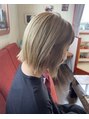 ハイトーンを活かしつつお手入れ簡単切りっぱなしの軽めボブでオシャレ感をプラス