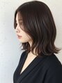 方に当たるレングスのミディアムボブは毛先を外ハネでくびれスタイルで小顔みせ。シースルーバングで大人可愛くも◎透明感カラーとトリートメントのケアでキレイな艶髪に!
