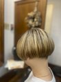 レディースツーブロックカットです。前髪なしです。3ミリで刈り上げてます。メッシュキャップブリーチして、グレージュでカラーしてます。