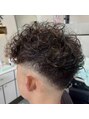 フロント、トップにボリュームのパーマにローゾーンにはツープロック&フェードのスペインカールスタイルトップは重すぎないヘアクリームでしっとり艶感とカールを出します