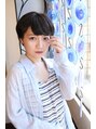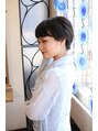 重めの前髪がポイントのショートレイヤー。襟足はスッキリとハンドブローのみで形になりやすいバランスです。
