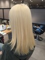 ブリーチ2回でオレンジ味を消したハイトーンブリーチケアブリーチでできるだけダメージを抑え綺麗に明るくしています。このくらい明るいとダブルカラーも綺麗にできますよ!