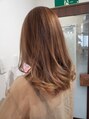 ミディアムレイヤースタイル ワンカール仕上げハイトーンカラーのイエローベージュで軽やかで夏らしい色味にしました。