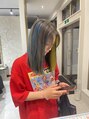 トップ、ミドル、インナー部分で分けられたデザイン◎ミドルの部分は左右でブルーとネオンライムに!ヘアスタイル全体で4色あるので他の人とは被らない自分だけのカラーに◎