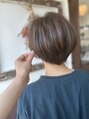 ふんわり質感のショートスタイル。カラーも赤みを抑えて明るめで柔らかく見えるようにしました。