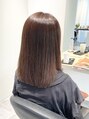 プレックス剤入りの薬剤で髪質に合わせた縮毛矯正。中間、後処理にXトリートメントを使用した根元から手触りの良い仕上がりに◎