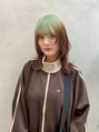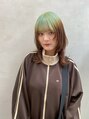 セミロングウルフにブリーチでルーツカラーデザイン。毛先の残留カラーを活かして、根元とのコントラストが今っぽさのあるデザインカラーです。