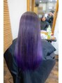 エアータッチ×エフェクトブリーチでしっかり抜いて、ビスコスで繊細なラベンダーグラデに。ビスコスはブロンドに戻るから、次のカラーチェンジも簡単。仕上げは美髪形成でツヤも手触りも最高レベルに。透明感と色気を両立させたい人、ぜひ一度体験して。