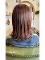 肌なじみの良いピンクカラーで柔らかさとツヤ感をプラス。顔まわりに入れたレイヤー(フェイスラインレイヤー)が小顔見せ効果も◎毛先は重さを残しながらも、軽やかな動きが出るようにカット。ナチュラルなストレート仕上げで毎日のスタイリングも簡単です