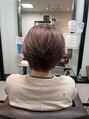 シアーピンクベージュのショートスタイル。後ろに向かって乾かすとトップの丸みが出やすいスタイルです