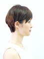 眉上で切り揃えた前髪が印象的なモードショート。コンパクトなフォルムにナチュラルブラウンの柔らかさを加えることで、強さの中にも女性らしさを感じさせます。甘すぎず、大人っぽく。シンプルだけどおしゃれ見えする、洗練されたフェミニンスタイル。