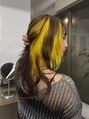 イエローはブリーチ、ほかのところは明るくブラウンに染めたデザインカラー