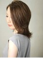 大人のウルフレイヤースタイル☆バックから前下がり作ったトップ。手ぐしでかき上げるこなれ感スタイル。カラーは透明感のあるヌーディーベージュで上品に。