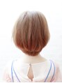 前下がりベースで長さは小顔にみえるアゴラインに設定。顔まわりと表面にだけレイヤーを入れふわっと軽さをだします。