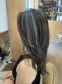 顔まわりにレイヤーを入れて、地毛ベースのハイライトカラーで白髪ぼかし。地毛ベースのハイライトカラーで根元が伸びてきても目立たないので人気です!