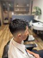 フェザーアップです!スキンフェードで上は短くします。セットはコームを使ってときつけるように