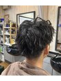 ソフトなセミスクエアシルエットスタイルです。基本的ツーブロックにアイロンでパーマ風にアレンジ!