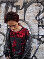 全体的に軽くなりすぎ無いように質感カットでまとまりと動きをだすスタイリングはグリースとオイルでツヤのあるウェットな仕上がりワイルド過ぎない崩した遊びのある大人ショート