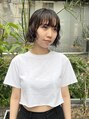 ミニボブのニュアンスパーマです!中間から毛先にかけて緩めにパーマをかけています。前髪もワンカールでかけてワイドめにしてあります。緩めのパーマがうまくスタイリングできない方はもう少しくるくるにするとやりやすくなります、