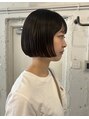 ブリーチなしのピンクブラウンカラー。首元がスッキリ見えるボブスタイルと相性バッチリ◯