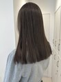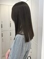 セミロング 透明感 グレージュ ブリーチなしオリーブ 縮毛矯正
